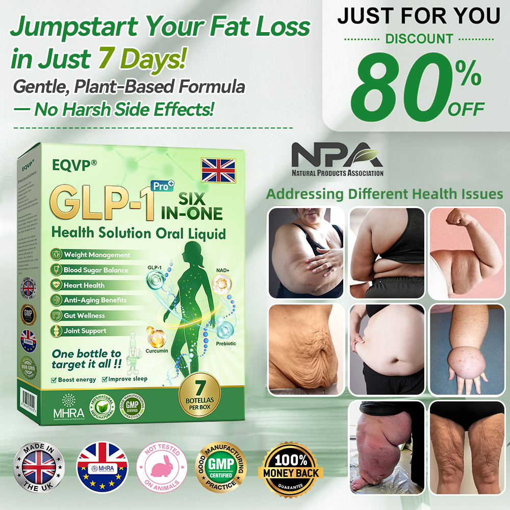 "I was once on the brink of death due to severe obesity. My health was deteriorating fast—I had high blood pressure, diabetes, and no energy to even get out of bed. After trying countless diets and treatments with no success, I found 𝗘𝗤𝗩𝗣® GLP-1 Six in One Health Solution Oral Liquid. At first, I was skeptical, but I decided to give it a try. To my surprise, within just two months, I lost 80 pounds, my blood pressure normalized, and I felt more energetic than ever before. This product truly saved my life, giving me a second chance to live a healthy, happy life." - Linda Brown, Leeds, UK